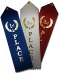 With custom ribbons in a variety of different designs, you do not have to add extra expenses to your event to make your contestants feel special. Ribbons are an easy and affordable way to recognize participants as well as competition winners and give everyone a sense of pride. Students, athletes and event contestants can all receive a stately ribbon proudly showing their affiliation with the school, group, sport, charity or event. With custom ribbons as affordable as .14 cents per item, you can easily order thousands of ribbons for your entire organization, camp, church, school, workplace or another group. Ribbons can be customized with different fonts, text, colors, and pictures so you can display the honor and the organization prominently in the style you choose. Ribbons are available in varying sizes and can be sticky, so judges, instructors, speakers, honored guests and others can wear them. AAA Awards will add custom logos or pictures to your ribbons or choose from a variety of stock photos for particular sports or achievements, such as running, football, soccer, hockey, swimming, track, academic excellence, perfect attendance and more. You can give your top contestants first, second and third place ribbons, customize ribbons for other places, and order ribbons to honor participation in the event.
